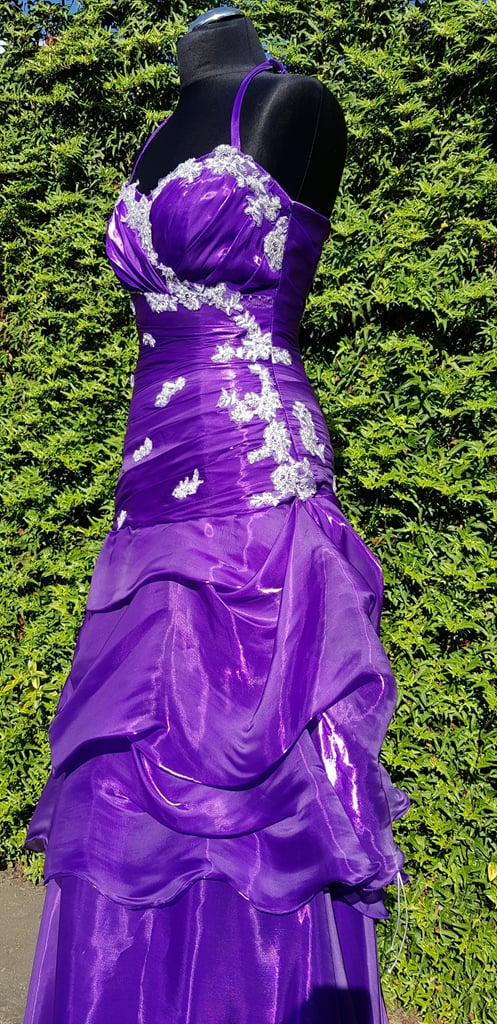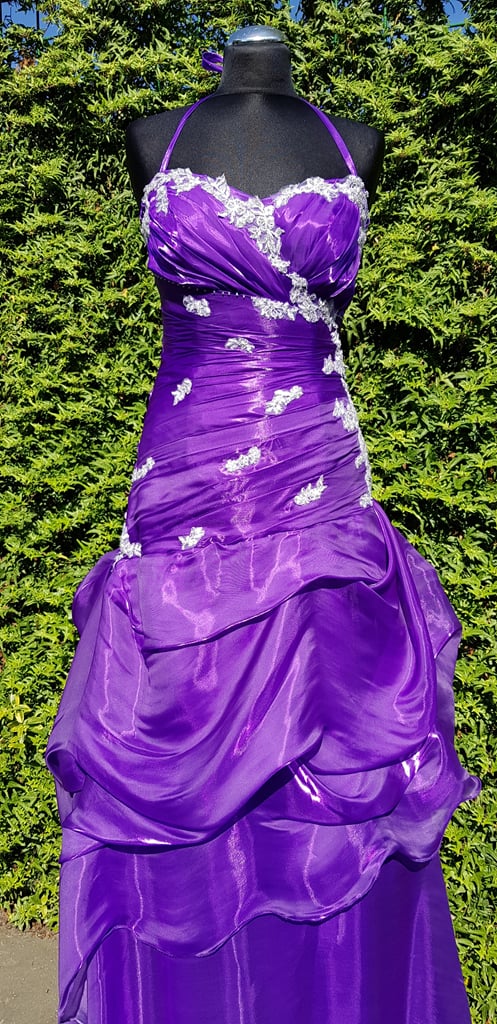 Vrstvené společenské šaty,vyšité bílou krajkou.