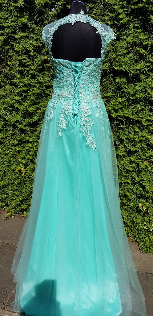 Tylové korzetové šaty s vlečkou.