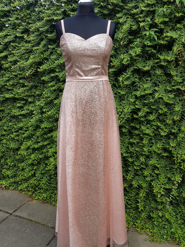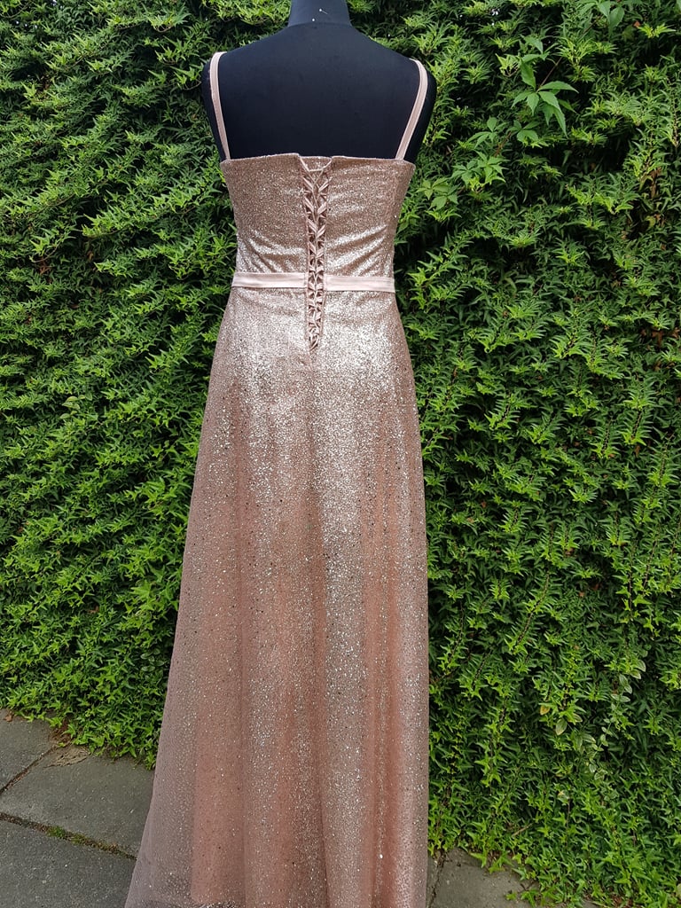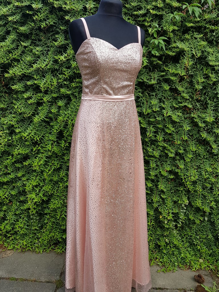 Jsou ušité s organzy s bohatou flitrací v barvě strorůžové.