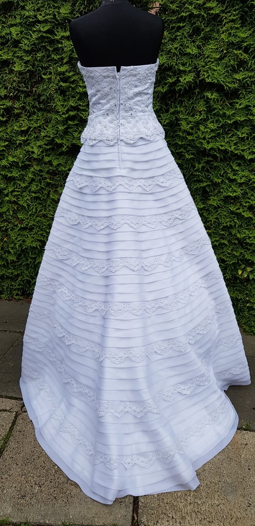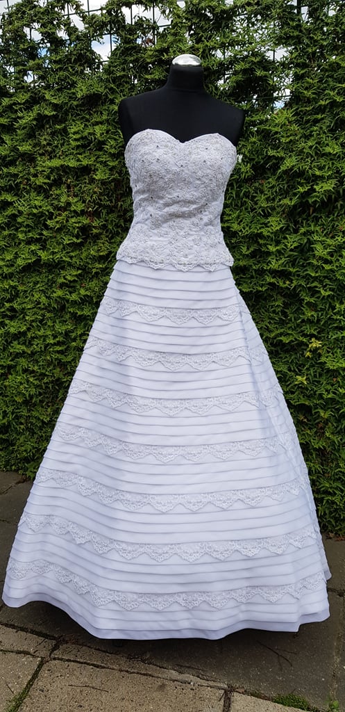 Korzetové svatební šaty s vlečkou.