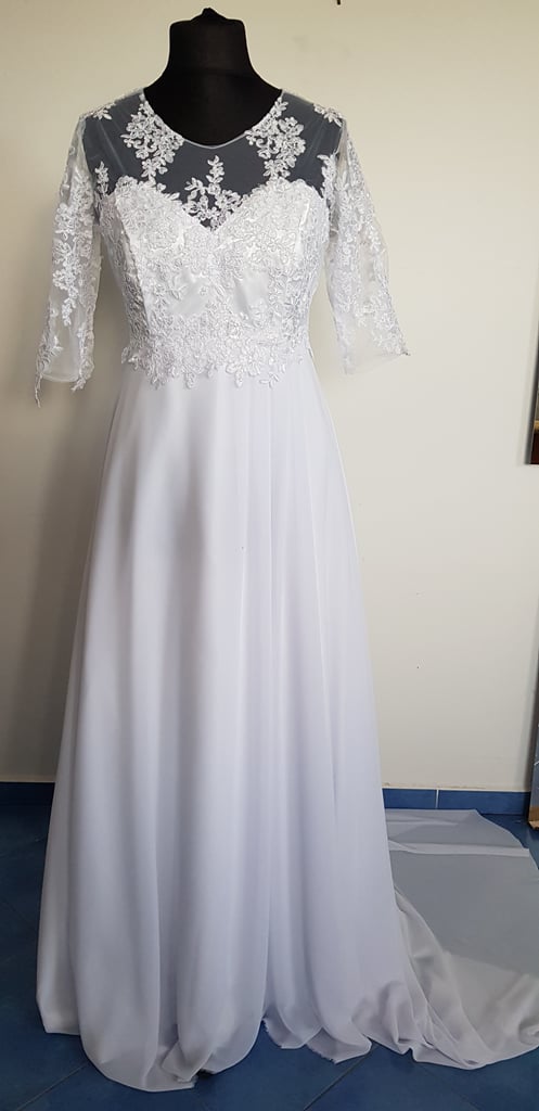 Šifónové svatební šaty s rukávkem.