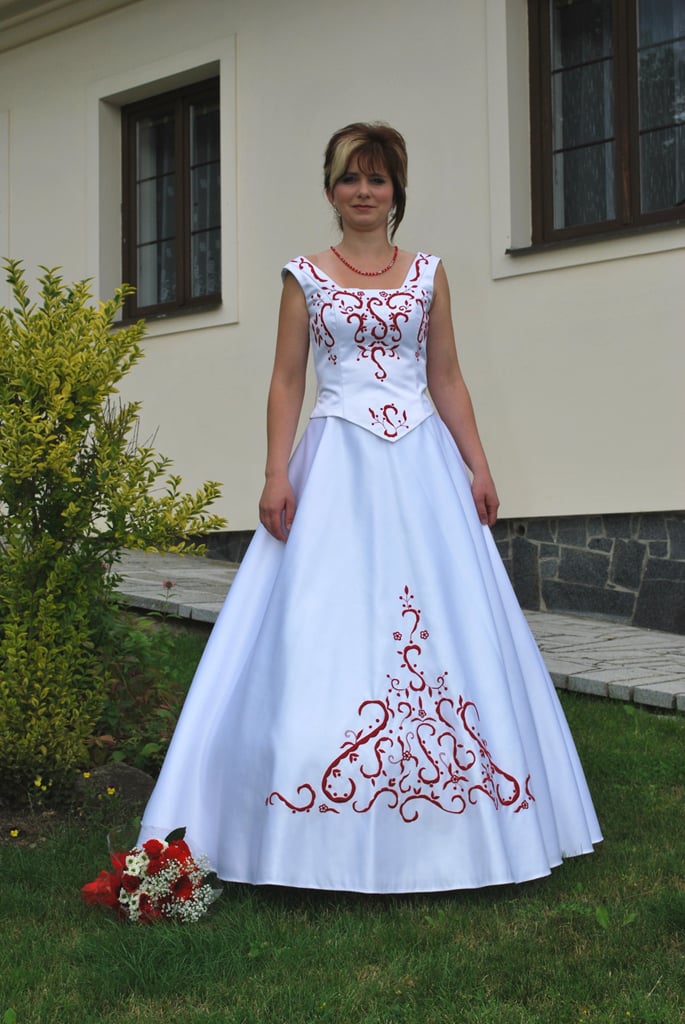 Saténové svatební šaty dvoudílné.
